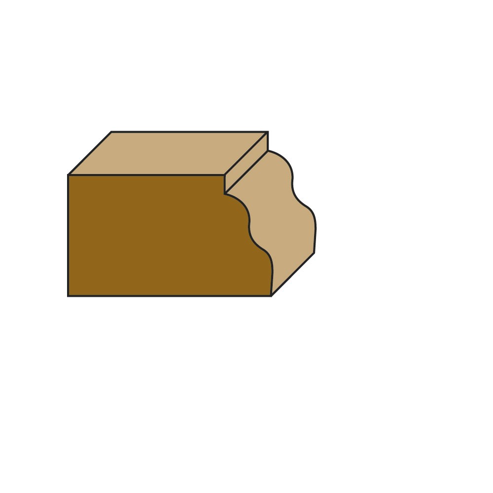 Fresa classica per profilare spigoli di pannelli. bordi e listelli in legno decorativi. Vasta scelta di profili. raggi e diametri per ogni vostra esigenza decorativa su tavoli. mobili e mensole così da rendere il vostro lavoro veramente unico. Si ottiene il profilo ad “S” romano consigliabile su mobili e antine di stile classico.