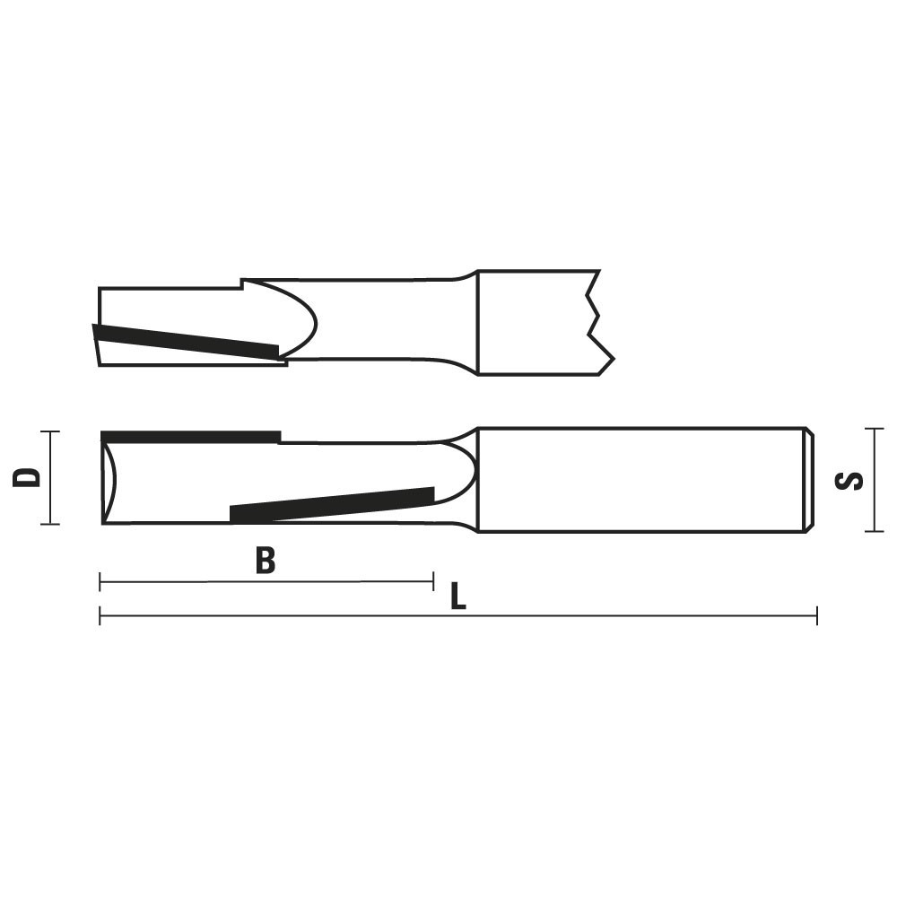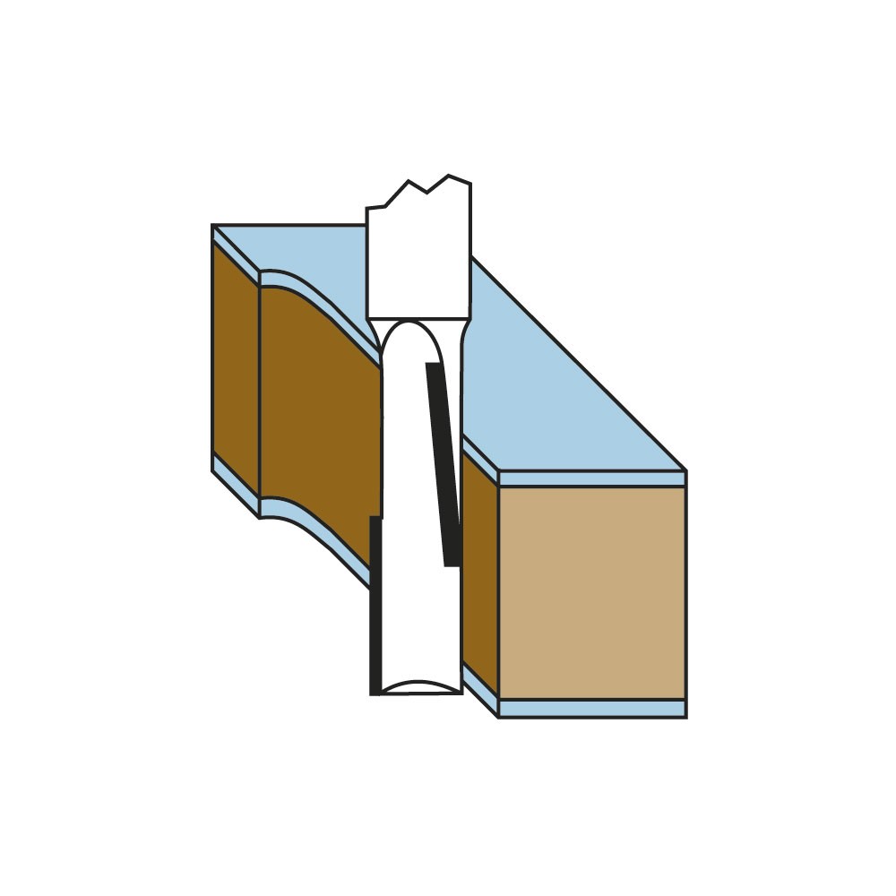 I due taglienti assiali sono inseriti lungo la fresa in posizione opposta a 180°. Sono appositamente pensati per fresare e rifilare pannelli laminati. melaminici. impiallacciati e compensato con un’ottima finitura sopra e sotto. La speciale geometria rende questa fresa unica. può infatti andare a velocità avanzate come se fosse una fresa monotagliente ma con la finitura di una a doppio tagliente.
