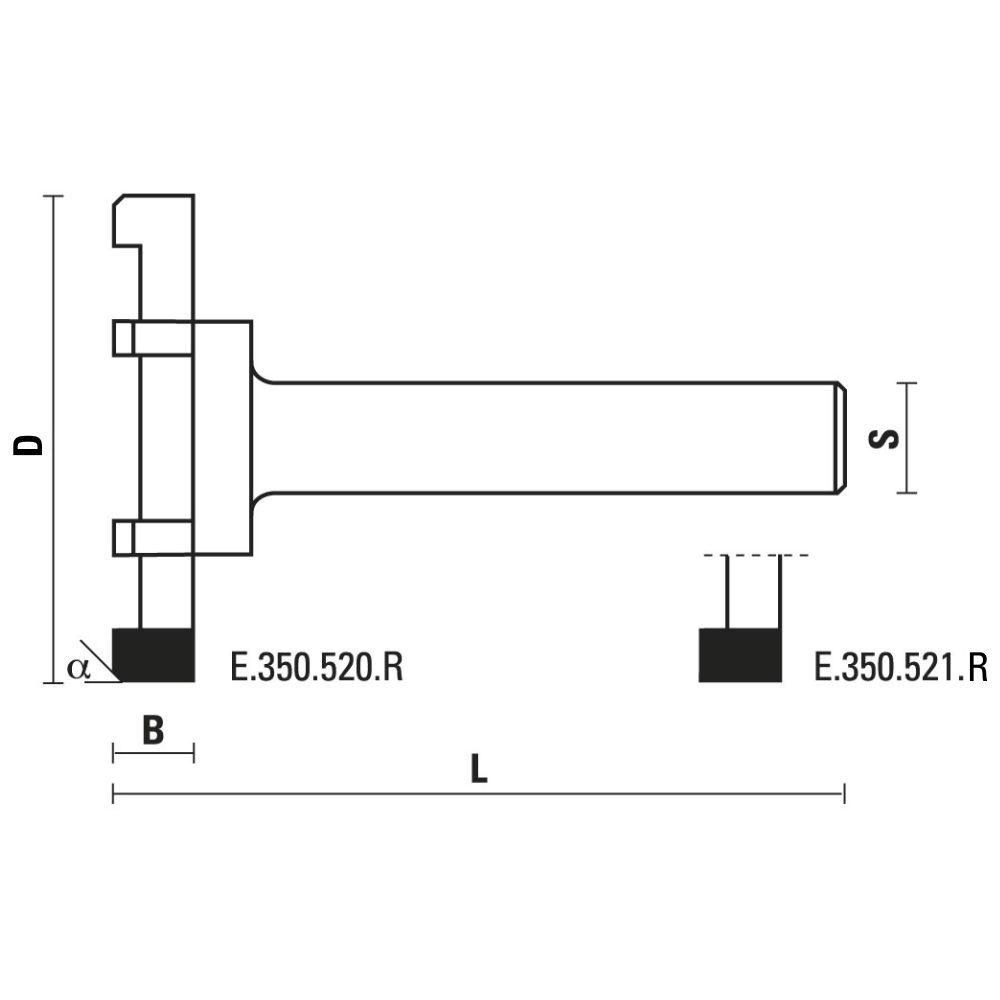 | E350.521.R | S=12;D=52;B=6.5;L=83;Z (Nr. denti)=6;α (Angolo di taglio)=0° | |||