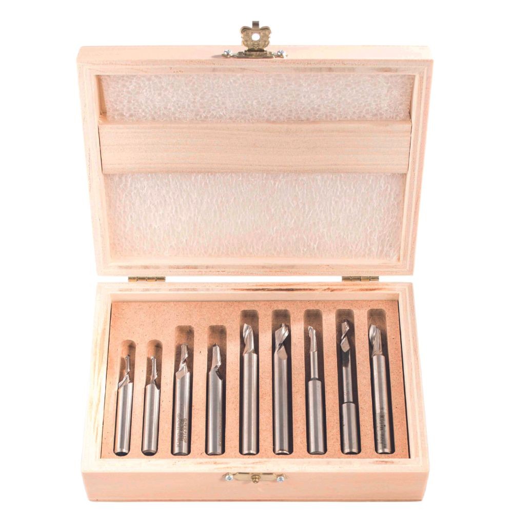 Cassetta in legno con 9 frese per alluminio di vari diametri.